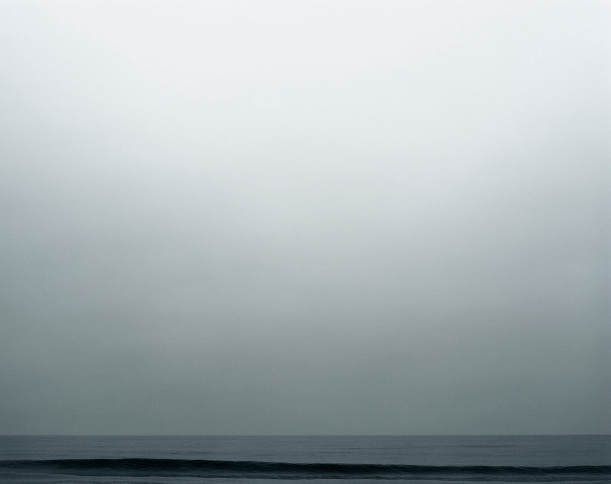 These Seascapes were inspired by the walks I took with my newly born son. 'June gloom' in the Santa Monica Bay generates dense low clouds that sit on the coastline. Struck by the dynamic subtle changes from moment to moment in color and density, I decided to start making images with my medium format film camera on our walks. The simplicity of composition and content carry a new quietness into my work that I re-discovered on those chilly beach mornings.